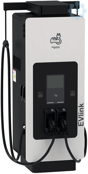 EVlink Pro DC Schnelllader mit 150kW Ladeleistung mit der Möglichkeit zum gleichzeitigen Laden von zwei Fahrzeugen. Die Ladestation passt sich automatisch dem tatsächlichen Ladebedarf jedes Fahrzeugs an und nutzt so die volle verfügbare Ladeleistung, um die Ladedauer so gering wie möglich zu halten. verfügt über 2 CCS2 Anschlüsse mit je 3,6m Kabellänge inkl. Kabelmanagementmentsystem. Ausgangsspannung am Ladeunkt: 150-1.000V DC, Ausgangsstrom: mx. 300A, Power-Modul-Größe: 30kW. integrierter Kurzschluss- und Überlastschutz sowie Fehlerstrom-Schutzschalter am DC-Anschluss, Überhitzungsschutz, Temperaturregulierung, Überspannungskategorie III, Standby Verbrauch 90W, Lautstärke 65dB (1m Abstand zur Ladestation). Für das sichere Laden von Elektrofahrzeugen gemäß IEC61851-1 ed.3 und IEC61851-23. Ladefreigabe via RFID-Karte, RFID reader gemäss ISO/IEC 14443 Typ A & B und ISO/IEC 15693, NFC-Leser kompatibel mit Tag-Typ 1, 2, 4, 5. Leserunterstützung: MIFARE Ultralight, MIFARE Classic 1K/4K, MIFARE DESFire EV1/EV2, MI