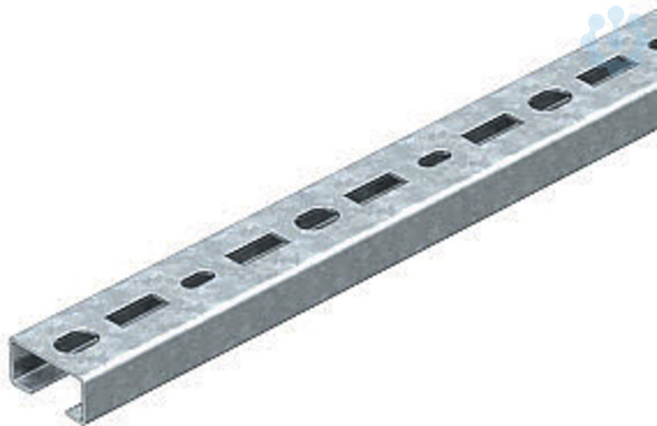 Mittlere C-Profilschiene zur Kabelverlegung, in Verbindung mit Bügelschellen mit Hammerkopf-Fuß. Auch verwendbar als Abhängekonstruktion für Kabeltragsysteme.