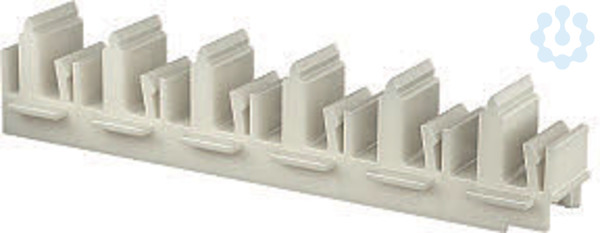 Profilverbinder horizontal mit Führungsschlitzen zum Einrasten von Konvektionsgitterprofilen für die Zusammenstellung einer kompakten Gittereinheit.