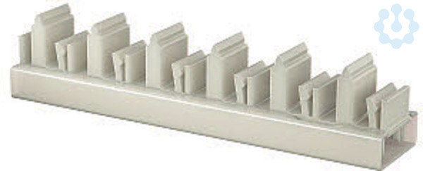 Profilverbinder horizontal mit Führungsschlitzen zum Einrasten von Konvektionsgitterprofilen für die Zusammenstellung einer kompakten Gittereinheit.