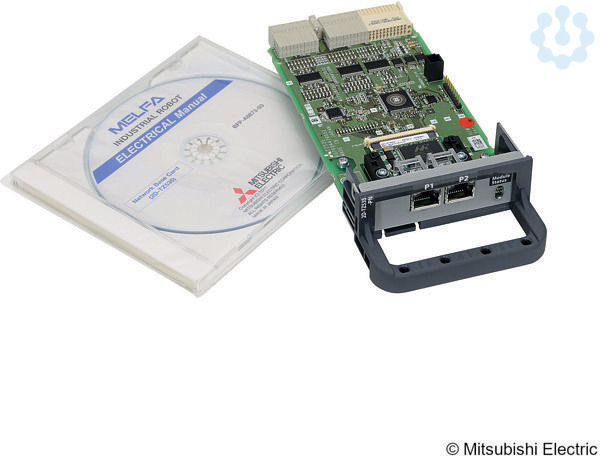 Mit Hilfe dieser Schnittstellenkarten kann die Robotersteuerung in ein Profinet I/O-Netzwerk eingebunden werden. Für alle MELFA-Roboter außer der Q-Serie, paarig verdrillte Ethernet-Leitung, Übertragungsgeschwindigkeit 100 Mbit/s, max. 256 Bytes senden und max. 256 Bytes empfangen
