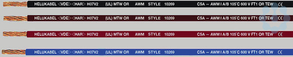 PVC-Einzelader nach DIN VDE 0285-525-2-31/ DIN EN 50525-2-31, UL Std.1063, UL Style 10269 (dadurch Style 1015 erweitert) und CSA-TEW bzw. CSA-AWM I A/B