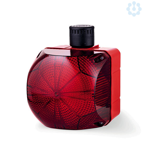 132 mm grosse quadratische LED Multiblitzleuchte mit eingebautem Summer-Indikator, max. 100 dB (A) Schalldruck, stufenlos regelbar, hohe Schutzart IP66 & Schlagfestigkit IK09, Leuchte mit hoher frontaler/seitlicher Signalwirkung, 4 verschiedene .Blitzmuster, Dauerlicht und Blinklicht (3 extern ansteuerbar), bis 120 Cd Lichtstärke, für industrielle und allgemeine Anwendungen,