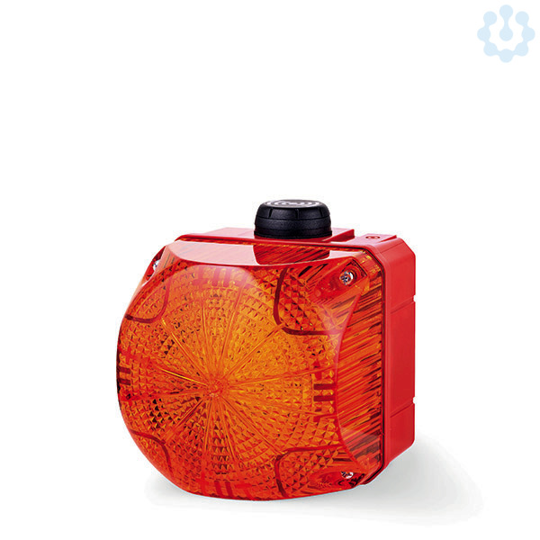 94 mm grosse quadratische Multiblitzleuchte mit eingebautem Summer-Indikator, max. 85 dB (A) Schalldruck, hohe Schutzart IP66 & Schlagfestigkeit IK09, Leuchte mit hoher frontaler/seitlicher Signalwirkung, 4 verschiedene extern ansteuerbare Blitzmuster, bis 64 Cd Lichtstärke, für industrielle und allgemeine Anwendungen,