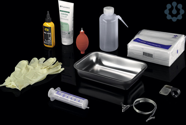 Reinigungsset bestehend aus Auffangschale, Reinigungstücher, Erdungskabel, Spritze, Schutzhandschuhe Methylethylketon, Gummi-Handblasebalg, Spritzflasche, Lupe, Schmieröl für Spindelantrieb, Handwaschpaste