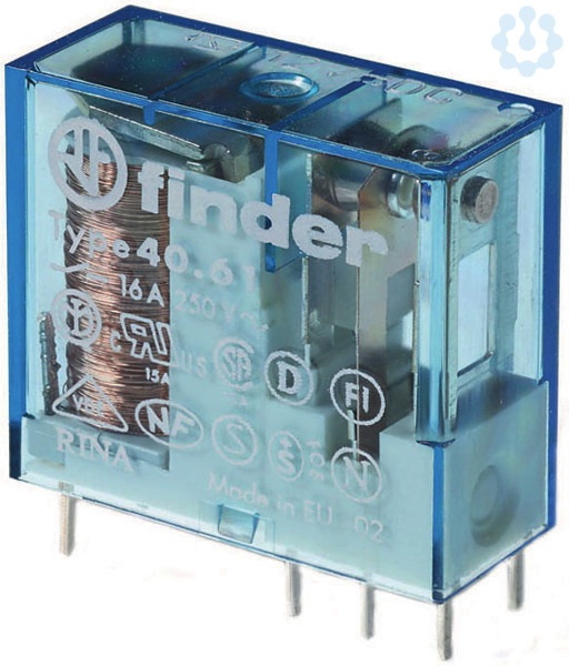 Steck-/Printrelais 1 Wechsler (AgSnO²) für 16 A / 250 V AC, Kontaktpinraster: 5.0 mm Spulendaten: 18 V DC, 0,5 W, 650 Ohm, Relaisschutzart: RT III