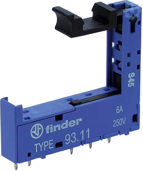 Relaisfassung mit Printanschlüssen, mit Halte- und Demontagehebel für Relais 34.51/34.81, Farbe blau.