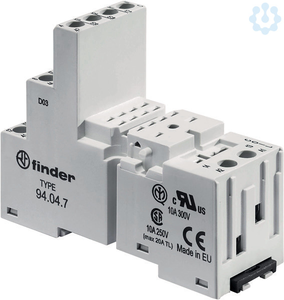 Relaisfassung mit Schraubanschlüssen für DIN-Schiene, mit integrierter Schnappbefestigung für Relais 55.32T und 55.34T, Modulreihe 99.02 oder Zeitmodul 86.30T, entspricht Norm EN 45545-2 + A1:2016 (Brandverhalten auf Schienenfahrzeugen), EN 61373 (Schwingen und Schocken), EN 50155 (Kälte, trockene und feuchte Wärme), Farbe grau.