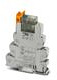 PLC-INTERFACE, bestehend aus Relaissockel und steckbarem Mehrlagen-Goldkontaktrelais mit Handbetätigung, integrierter Status-LED, Schraubanschluss, 2 Wechsler, Eingangsspannung: 230 V AC / 220 V DC