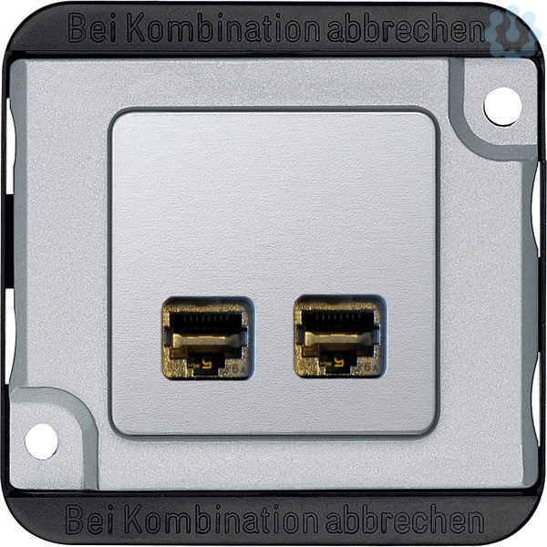Zum Anschluss von zwei analogen oder digitalen Endgeräten über zwei Actassi RJ45-Cat6A STP Module. Anschluss über Schneid-Klemmtechnik (werkzeugfrei). Farbe mattsilber.