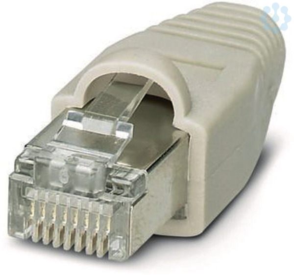 Stecker RJ45, CAT5e, 8-polig,geschirmt, IDC-Anschlusstechnik, für Litze und starre Ader AWG 26...24, mit grauer Knickschutztülle