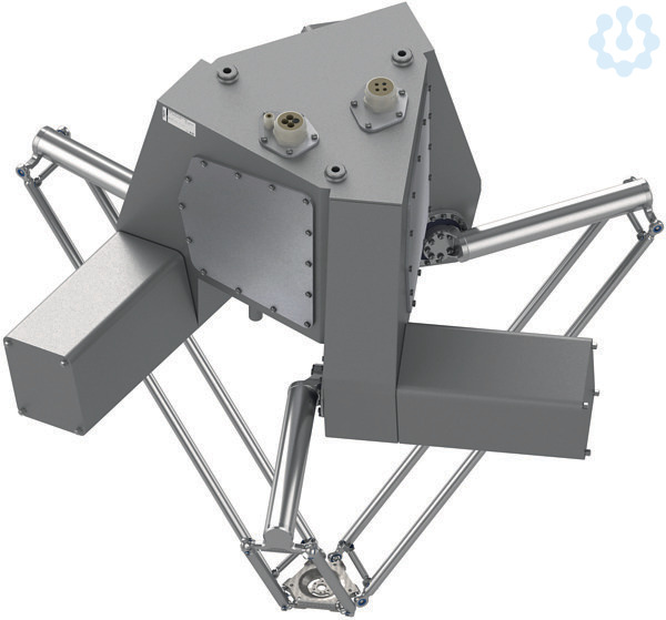 Lexium P - Roboter PacDrive Delta 3. Delta-Roboter für Pick & Place-Lösungen. Lexium P4 Roboter mit SH3 Motoren und keine Rotationsachse installiert. Reichweite bis 1200 mm und Traglast bis zu 15 kg. Standardgehäuse und abwaschbar.