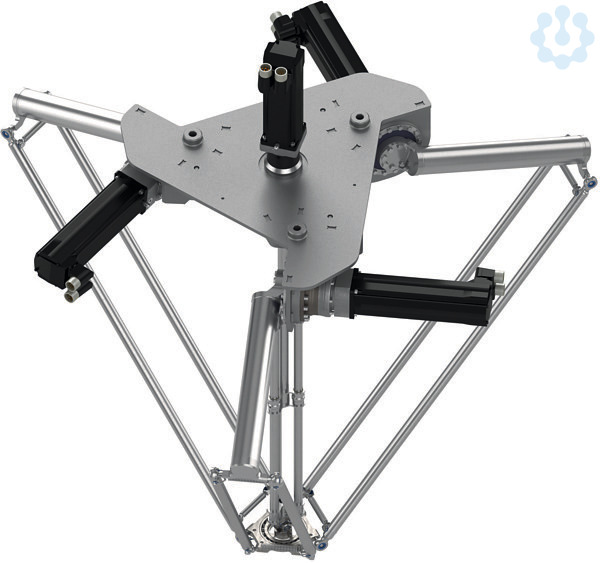 Lexium P - Roboter PacDrive Delta 3. Delta-Roboter für Pick & Place-Lösungen. Lexium P4 Roboter mit SH3 Motoren und rotationsachse installiert. Reichweite bis 1200 mm und Traglast bis zu 15 kg. Normal, Kompakt Gehäuse.