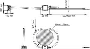 Rogowski-Spule. Primärer Bemessungsstrom 4000 A. Ausgangssignal 22,5 mV pro kA. Leitungslänge 1,5 m. Durchführung für Messleiter 175 mm