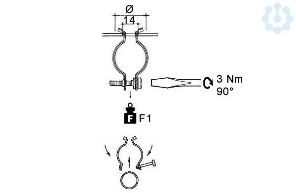 E-Klips, Rohrschelle, zweiteilig, zum Einstecken in Rohrschelle oder Deckenbohrung, Rohrschelle drehbar.