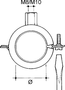 E-Klips, Rohrschelle mit Gummieinlage, zweiteilig, mit Gewindeanschluss für beide Gewindegrößen, für Gewindestababhängung.