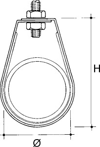 E-Klips, Rohrschlaufe einteilig, mit Anschlussbohrung, für Gewindestababhängung.
