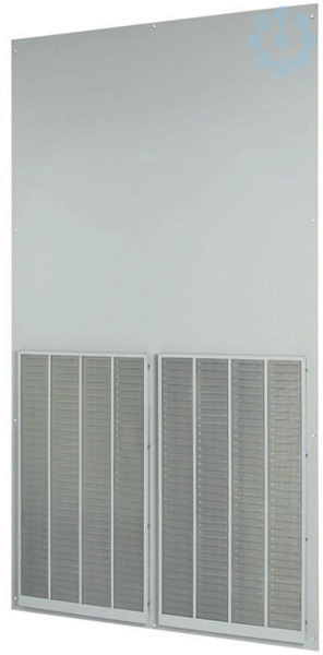 Rückwand, Lüftungsöffnung, IP42, Stahlblech, pulverbeschichtet, RAL 7035, mit wechselbarem Lüftungsgitter, Breite 1100mm