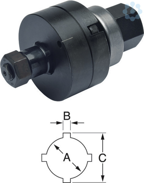 Stahlblech (St37), Kunststoff und Aluminium bis zu 3,0 mm Stärke. Komplettsystem bestehend aus Stempel, Matrize, Zugschraube, Kontermutter und Kugellagermutter. Betätigung manüll und hydraulisch. Vorbohren mit Durchmesser 15,9 mm Vorbohrer 50344030.
