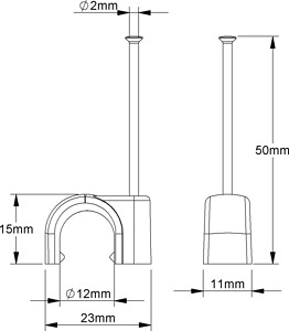 Rundschelle, mit vormontiertem Nagel, halogenfrei. Abmessungen (ca. Maße) H x B x L : 15,5 x 11 x 23,5 mm für Kabel-Ø