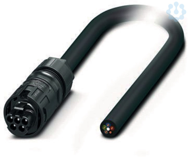 Rundsteckverbinder (kabelseitig), Artikelfamilie: PRC, Verbindungsleitung, Material Gehäuse: PPE, Farbe: schwarz, Polzahl: 5, Nennspannung: 690 V AC, Bemessungsstrom: 32 A, Anschlussart: Schraubanschluss, Kontaktart: Stift