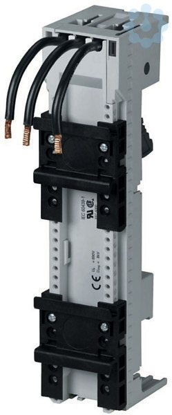 45mm Sammelschienenadapter für 60mm Sammelschienensystem, zwei Tragschienen, drei vorkonfektionierte Leitungen (AWG12 / 4mm²) zum Anschluss an Schaltgerät, universell einsetzbar, Tragschienen im Raster 1,25mm versetzbar, Bemessungsbetriebsstrom: 25A