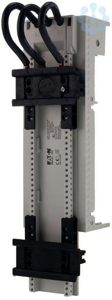 72mm Sammelschienenadapter für 60mm Sammelschienensystem, zwei Tragschienen, drei vorkonfektionierte Leitungen (AWG8 / 10mm²) zum Anschluss an Schaltgerät, verwendbar für Direktstarter mit PKZ2, PKZM4, PKE65 und Leistungsschütz DILM7 bis DILM40, Bemessungsbetriebsstrom: 63A