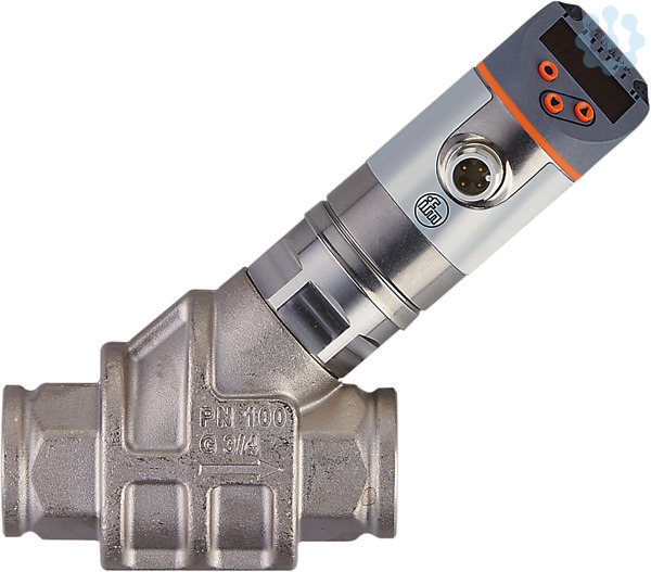 Mechatronischer Durchflusssensor. Schaltsignal. Analogsignal. Frequenzsignal. IO-Link. Messbereich 0,5...25 l/min. Mediumtemperatur -10...100 °C. Druckfestigkeit 100 bar. G 3/4 Innengewinde. Steckverbindung