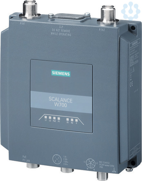 IWLAN Access Point, SCALANCE WAM766-1, 1 Radio, 2,4/5 GHz, IEEE 802.11ax (Wi-Fi 6), 2 N-Connect-Anschlüsse, iFeatures-Support via CLP, 1201 Mbit/s (brutto) pro Radio, 1x 10/100/1000 Mbit/s M12-Port, Redundant DC 24V, M12 L-kodiert , PoE, IP65, -30...+60°C, CLP-Schacht, DI/DO, A-kodiert, Länderzulassungen beachten! CERT ID: MSAX65-W1-M12-E2, Betrieb in Ägypten Lieferumfang: Verschlusskappen für Anschlüsse SCALANCE WAM766-1 M12