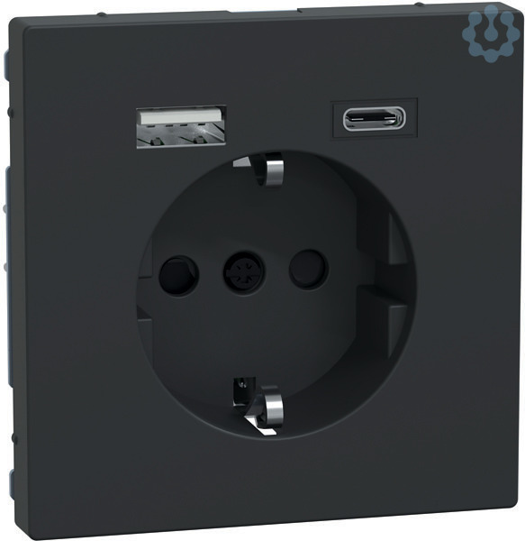 Schuko Steckdose Integrierter erhöhter Berührungsschutz gemäß VDE 0620 Teil 1. USB 2.0 Spannungsversorgung mit zwei Ausgängen zum gleichzeitigen Betreiben/Laden von zwei USB-Geräten mit integriertem Akku. Mit Krallen- und Schraubbefestigung. Mit Steckklemmen. Netzspannung. Nennspannung AC 100-240 V, 50-60 Hz. Eigenverbrauch < 0,15 W. USB Ausgänge. Ausgangsspannung DC 5 V +/- 10 %. Nennausgangsstrom 3000 mA (für beide Ausgänge zusammen). Material Thermoplast lackiert. Farbe Anthrazit.