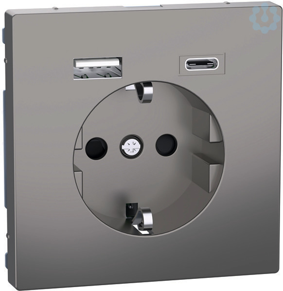 Schuko Steckdose Integrierter erhöhter Berührungsschutz gemäß VDE 0620 Teil 1. USB 2.0 Spannungsversorgung mit zwei Ausgängen zum gleichzeitigen Betreiben/Laden von zwei USB-Geräten mit integriertem Akku. Mit Krallen- und Schraubbefestigung. Mit Steckklemmen. Netzspannung. Nennspannung AC 100-240 V, 50-60 Hz. Eigenverbrauch < 0,15 W. USB Ausgänge. Ausgangsspannung DC 5 V +/- 10 %. Nennausgangsstrom 3000 mA (für beide Ausgänge zusammen). Material Thermoplast lackiert. Farbe Nickelmetallic.