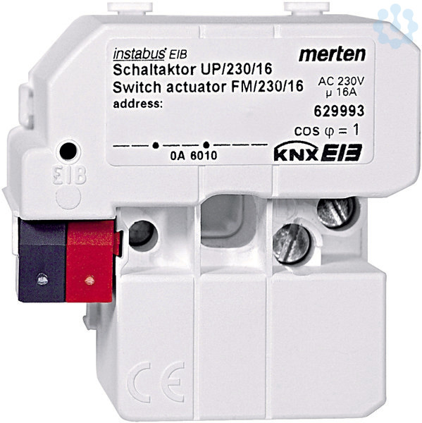 Zum Schalten von einem Verbraucher über Schließerkontakt. Mit integriertem Busankoppler und Schraubklemmen. Das Gerät wird über eine Busanschlussklemme mit dem Bus verbunden. Der Aktor kann in eine 47 mm tiefe Deckendose mit Haken oder eine Unterputz Schalterdose eingebaut werden. Softwarefunktionen KNX: Betrieb als Öffner oder als Schließer, Verzögerungsfunktionen für jeden Kanal, Treppenlichtzeitfunktion mit/ohne manuell AUS-Funktion, Ausschaltvorwarnung bei Treppenlichtzeitfunktion, Sperrung und zusätzlich Verknüpfung oder Zwangsführung, Szenen, Rückmeldefunktion pro Kanal, Zentralfunktion, Umfangreiche Parametrierung für Busspannungsausfall und -wiederkehr, Parametrierbares Verhalten bei Download. Nennspannung: AC 230 V, 50-60 Hz. Nennstrom: 16 A, ohmsche Last. 10 A, cos Phi 0,6. Nennleistung. Glühlampen: AC 230 V, max. 2700 W. Halogenlampen: AC 230 V, max. 1700 W. Leuchtstofflampen: AC 230 V, max. 1000 VA parallelkompensiert. Kapazitive Last: AC 230 V, max. 105 uF. Lieferumfang: Mit Busanschlussklemme. F