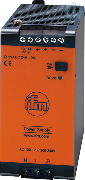 Schaltnetzteil 24 V DC. 10 A. Eingangsspannung AC 100...120 V. Eingangsspannung 2 AC 200...240 V. 124 x 62 x 122,5 mm. Anschlussklemmen. Zulassung CE,cRUus,cULus
