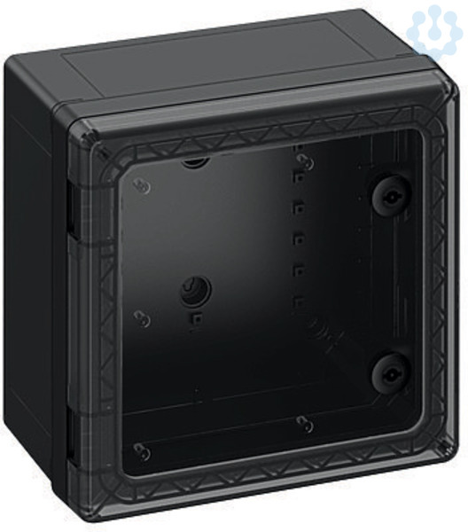 Schaltschrank-Industrie Qualität, geeignet für die Installation in rauen Umgebungen und im ungeschützten Außenbereich, Kasten und Rahmen: glasfaserverstärktes Polycarbonat, schwarz, ähnlich RAL 9005, Tür: Polycarbonat.Drehriegelverschluss mit 3mm Doppelbarteinsatz (austauschbar) nach DIN 43668, mit transparenter TürAbmessungen: 300 x 300 x 180mm