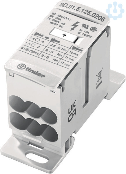Schienenanschlussblock 125 A, Verbindung und Verteilung von Hochstromleitungen in Schaltschränken und Verteilungen, Nennstrom 125 A, Eingänge: 2, Ausgänge: 6, für Tragschiene 35 mm
