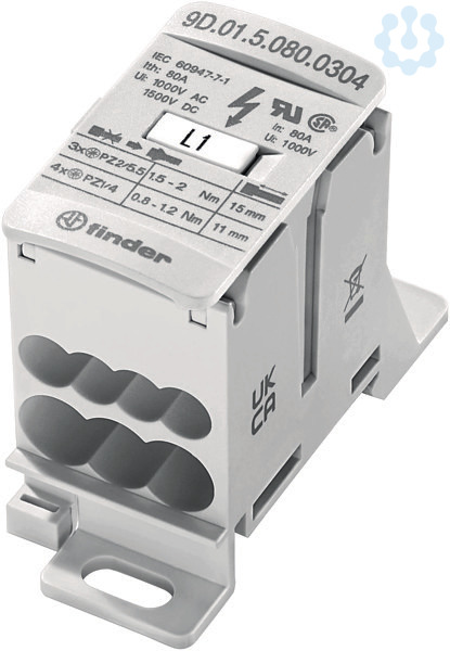 Schienenanschlussblock 80 A, Verbindung und Verteilung von Hochstromleitungen in Schaltschränken und Verteilungen, Nennstrom 80 A, Eingänge: 3, Ausgänge: 4, für Tragschiene 35 mm