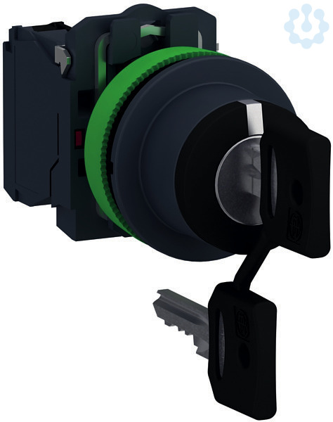 Schlüsselschalter Harmony XB5F, Komplettgerät in Kunststoffausführung. 3 Schaltstellungen rastend mit 2 Schließer, schwarze Front. Mit hoher Vibrationsfestigkeit und chemischer Beständigkeit. Einbaumaß 30mm, Umgebungstemperatur -40 bis +70 Grad C. Schutzart bis IP69K, Internationale Standards IEC, UL, CSA, CCC EAC und JIS, CE Kennzeichen.