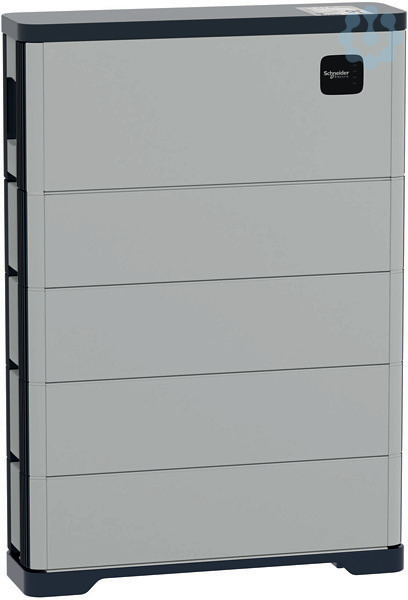 Schneider Boost Batterie Modul mit 13,6kWh Kapazität. Bestehend aus 4 x Schneider Boost Batterie Modul (BATB3KEU3) mit je 3,4kWh Kapazität und dem Schneider Boost Batterie Controller (BATPMEU2). Nutzbare Energie 12400Wh. Betriebstemperatur -25 bis 55°C, Abmessungen BxHxT 799x1150x218 mm, Gewicht 138kg, Schutzgrad IP55. Normen: IEC 63056, IEC 62619, IEC 62477-1, EN 61000-1/3.