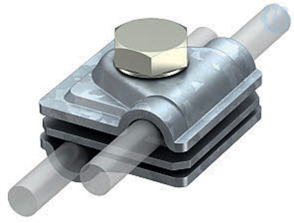 Schnellverbinder zur Erstellung von T-, Kreuz- und Parallel-Verbindungen. Schnelle Montage mittels einer Schraube M10 x 30 aus rostfreiem Edelstahl. Entspricht den Anforderungen nach VDE 0185-305 (IEC 62305). Passung: RD 6-8 / 8-10