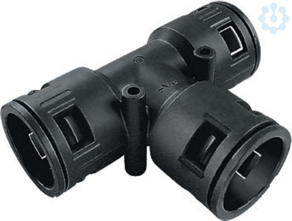 Kunststoff-Schnellverschraubung, T-Verteiler RQT-PA, IP 68 /IP 69K einteilig, hochdichtend, für ROHRflex Wellschläuche Material: Kunststoff (PA), Farbe: schwarz (auch in grau lieferbar) Temperaturbereich: -40°C ...+120°C Zulassungen: UL 1696 - CSA 22.2 UR-File-no E86359 / EN 45545 (HL3) / NFF 16-101/102 (I3/F2) / DIN 5510 - Teil 2 / Gost Eigenschaften: beständig gegen Öl und Benzin / silikon-, cadmium- und halogenfrei / weitgehend säure- und lösungsmittelbeständig