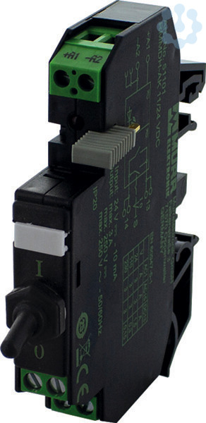 Schnittstellenbaustein IN: 24V DC. OUT:250V AC/DC-3A m.Kippschalter 1W 12mm Schraubklemme