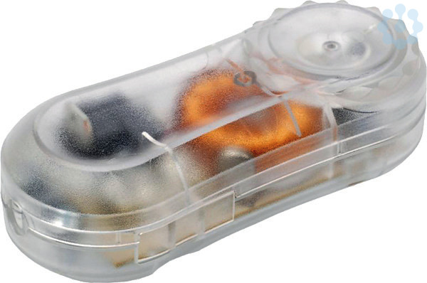 Schnur-Zwischendimmer Serie 8114. 250 V, 50 Hz, von 20 - 200 W/VA. Farbe: Transparent. Dreh-Ausfunktion. mit Schutzleiteranschluss. von außen zugänglicher Sicherungshalter. Maße: L/B/H 96 x 41 x 29mm