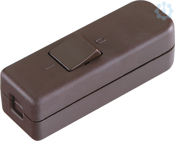 Schnur-Zwischenschalter Serie 8006 6(4)A 250V Ausschalter, 1polig Gehäuse: braun / Wippe: braun Gehäuse und Zugentlastung geschraubt, 2 Verbindungsklemmen, Kennzeichen 0-1, Schraubkontakte, für 2- und 3-adrige Kabel. geeignet zum skundärseitigem Schalten von Halogenleuchten.