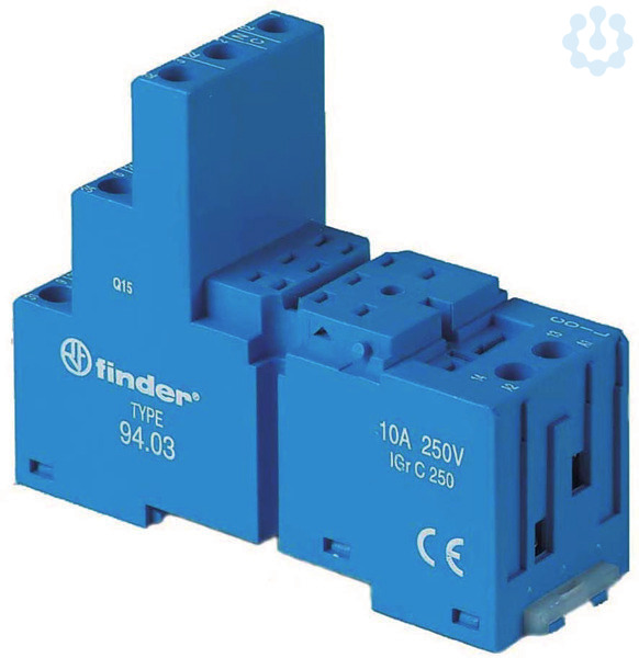 Relaisfassung mit Schraubanschlüssen, Farbe blau, mit integrierter Schnappbefestigung für Relais 55.33, Modulreihe 99.02 und Zeitmodule 86.30, Farbe blau für Haltebügel 094.91.3