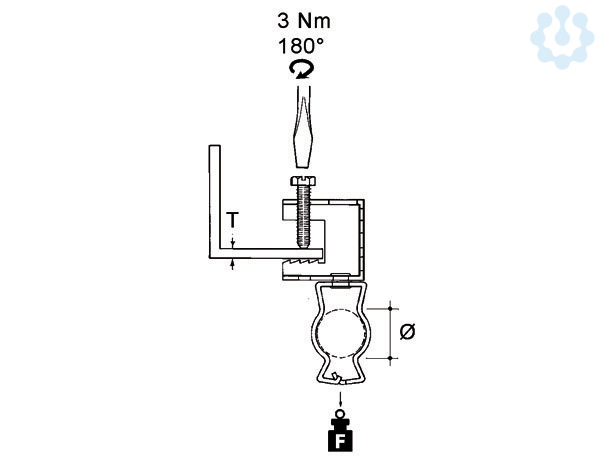 E-Klips, Schraubklemme mit einteiligem Rohrclip, zum Anschrauben an verschiedenste Trägerflansche, Rohrclip an Schraubklemme drehbar, für Rohrabhängung.