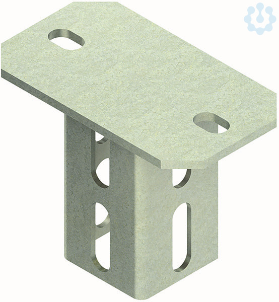 Schraubkopfplatte, Kopfplatte mit angeschweißtem, dreiseitig durchgehend gelochtem U-Profil, zur Montage an waagerechten Decken, einschließlich anteilmäßigen Befestigungszubehör in Edelstahl, Werkstoff Nr. 1.4571.