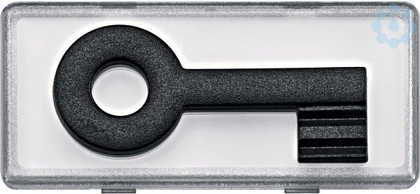Für Wippen und Steckdosen mit großem Schriftfeld. Das bestehende Schriftfeld wird durch das tastbare Kontrast-Symbol ausgetauscht. Ausführung Schlüssel, glasklar.