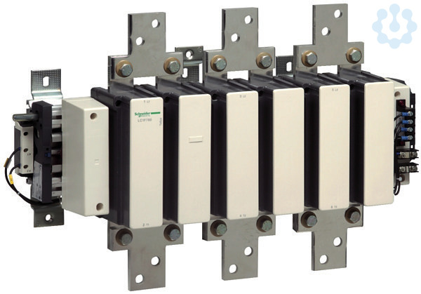 Leistungsschütz TeSys LC1F. 3 polig, 3 Schließer. Bemessungsbetriebsleistung bei AC-3, 400 V 400 kW, Bemessungsbetriebsstrom Ie bei AC-3, 400 V 780 A. Abmessung (BxHxT) 702x434x255 mm, Gewicht 48 kg. Kategorie AC-4, AC-3, AC-1. Für die Überwachung aller Motorentypen in normalen oder schwierigen Betriebsbedingungen. Überwachung von Widerstands-, Induktions- und Kapazitivschaltkreisen. Zertifizierungen nach UL, LROS (Lloyds register of shipping), RINA, DNV, CCC, BV, CB, ABS. Produktstandards gem. IEC 60947-1, IEC 60947-4-1, EN 60947-1, JIS C8201-4-1, EN 60947-4-1.