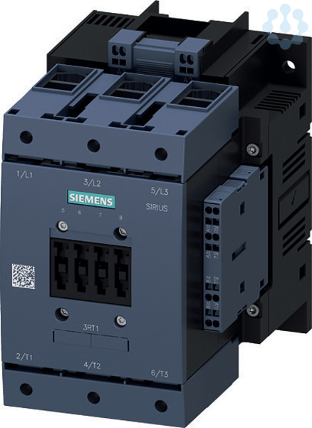 Leistungsschütz, AC-3 150 A, 75 kW / 400 V AC (50-60 Hz) / DC-Betätigung UC 23-26 V (Federzuganschluss) Hilfskontakte 2 NO + 2 NC 3-polig, Baugröße S6 Schienenanschlüsse Antrieb: konventionell Schraubanschluss Rahmenklemmenblock 3RT1955-4G montiert Leistungsschütz SIRIUS 3RT1 zum Schalten von Motoren.
