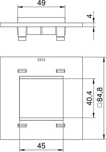 Abdeckplatte mit eckiger Öffnung für eine 1-fach-Steckdose der Bauart Modul 45, passend zur T4L- und T8NL-Schmalseite oder zur T4L- und T8NL-Längsseite (1/2 Abdeckung).